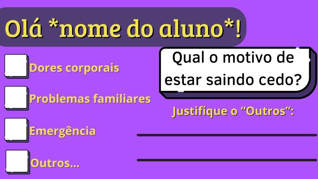 Se caso ocorrer isso,no aplicativo,o aluno vai ter que justificar o por que,que está saindo cedo,como: